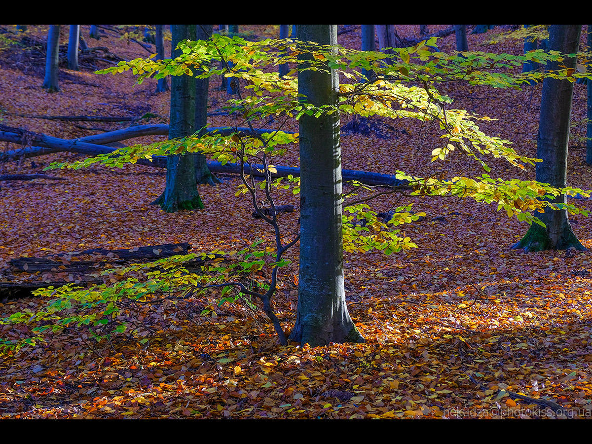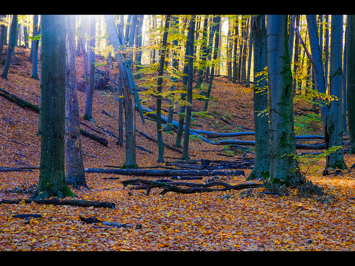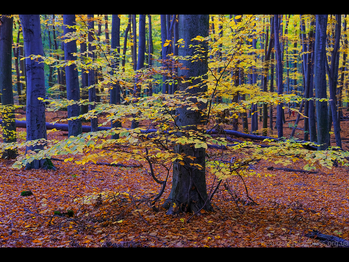 13. Дивний ефект, камера вирішила підфарбувати стовбури буків блакитним.