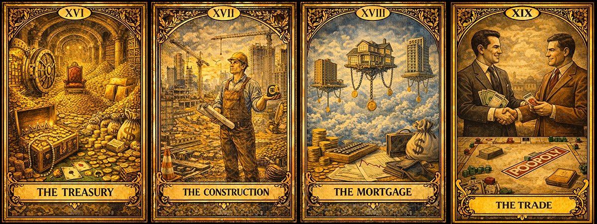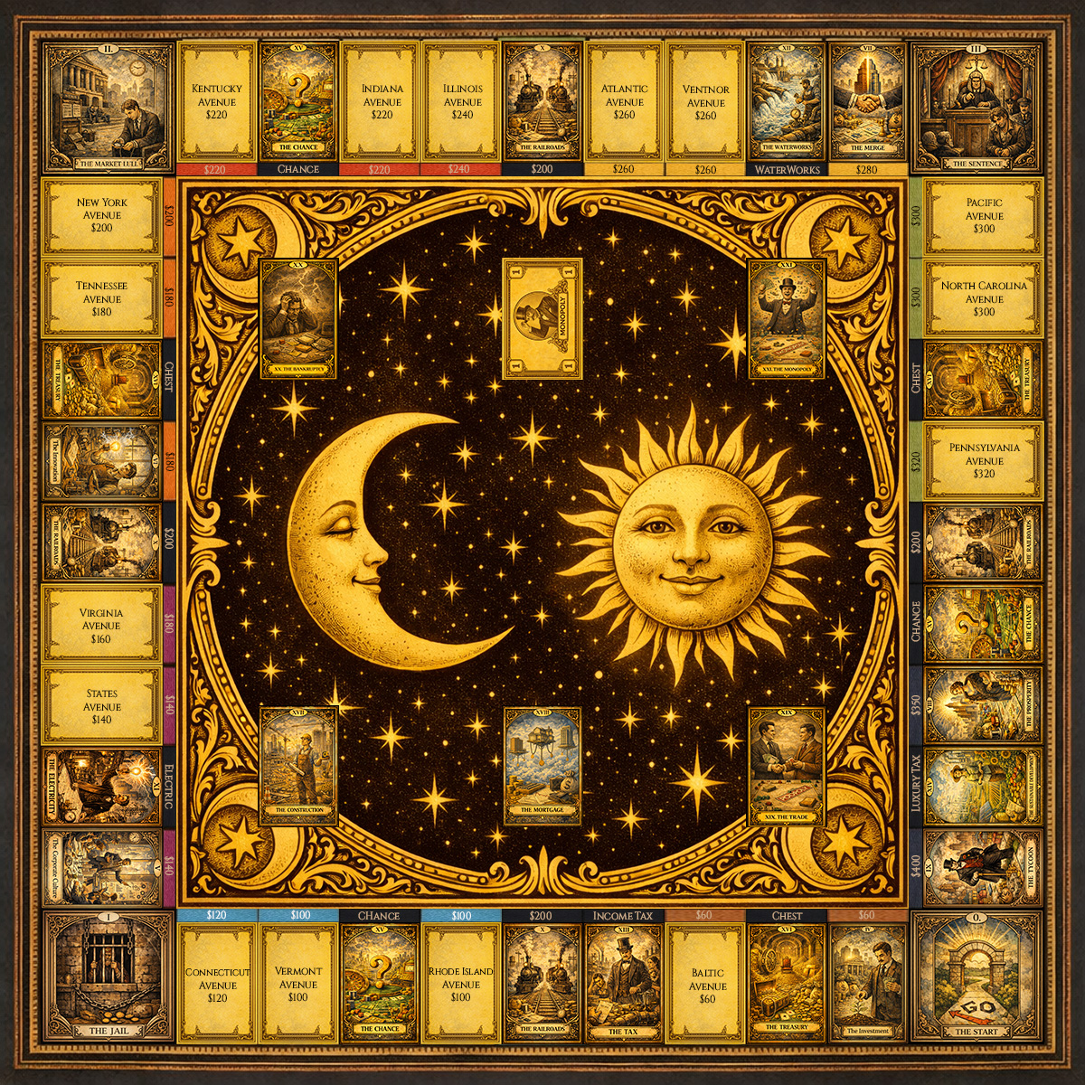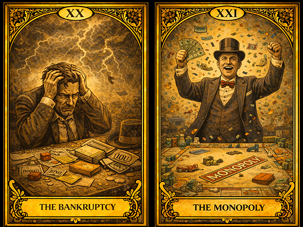 Разом поле “Монополії” формує духовний цикл: початок → становлення → влада → криза → переродження. Таким чином, справжній урок гри — не перемога, а усвідомлення циклу накопичення і втрати. Але це занадто загально, отже подивимось на аркани, архетипічні елементи, на яких побудована монополімантія.